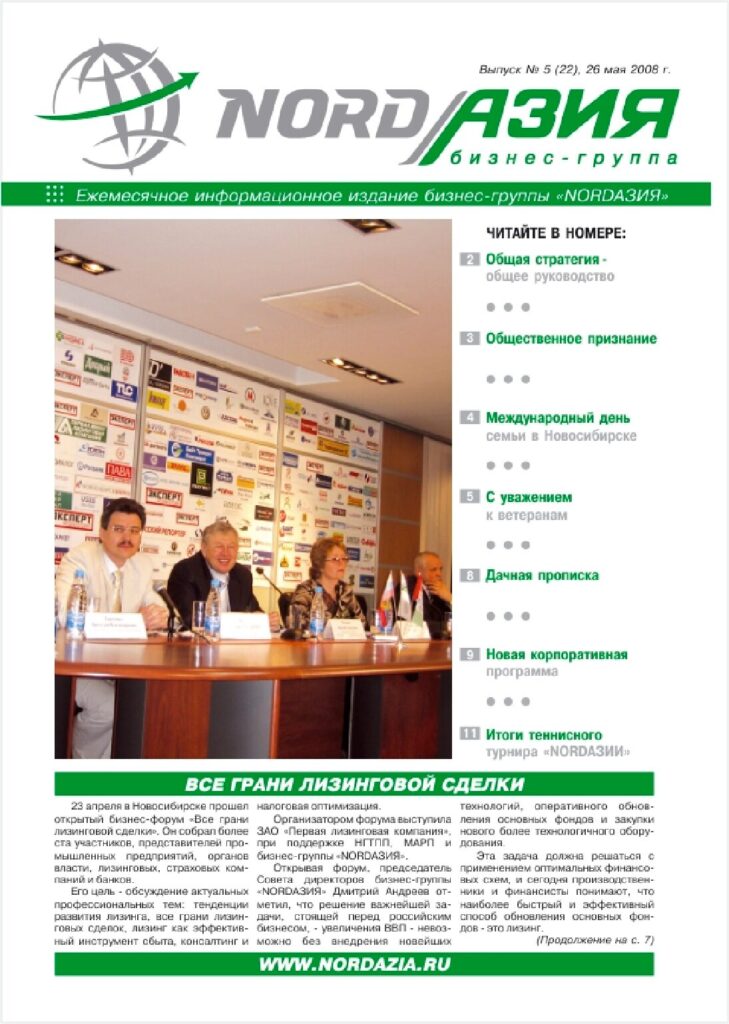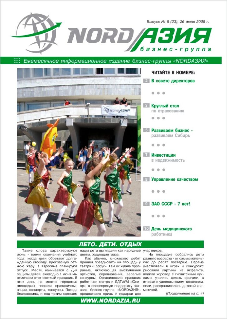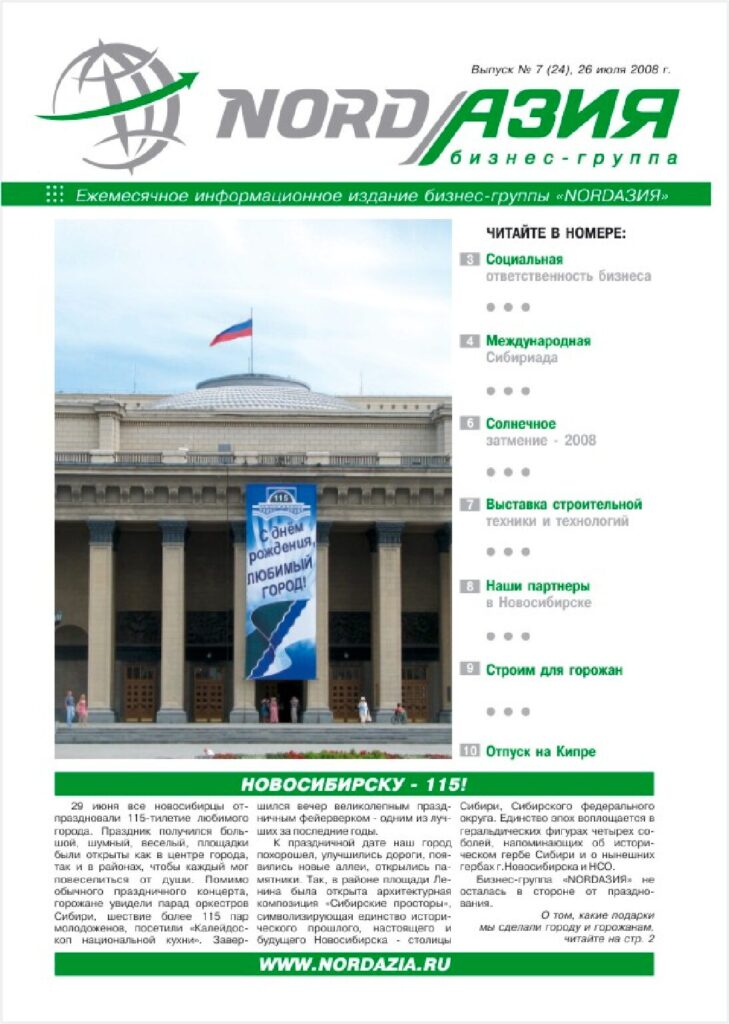 В 2006-2014 годах бизнес-группа издавала корпоративную газету «NORDАЗИЯ», которая фокусировалась на событиях, важных для наших компаний и нашего города. В апреле 2014г. её выпуск был прекращен. Как писала редакция, «Сегодня время печатных СМИ подходит к концу… наша газета превратится в современное интернет- издание…». А собранный здесь архив газет – это наша общая история, к которой доступ отрыт всем.