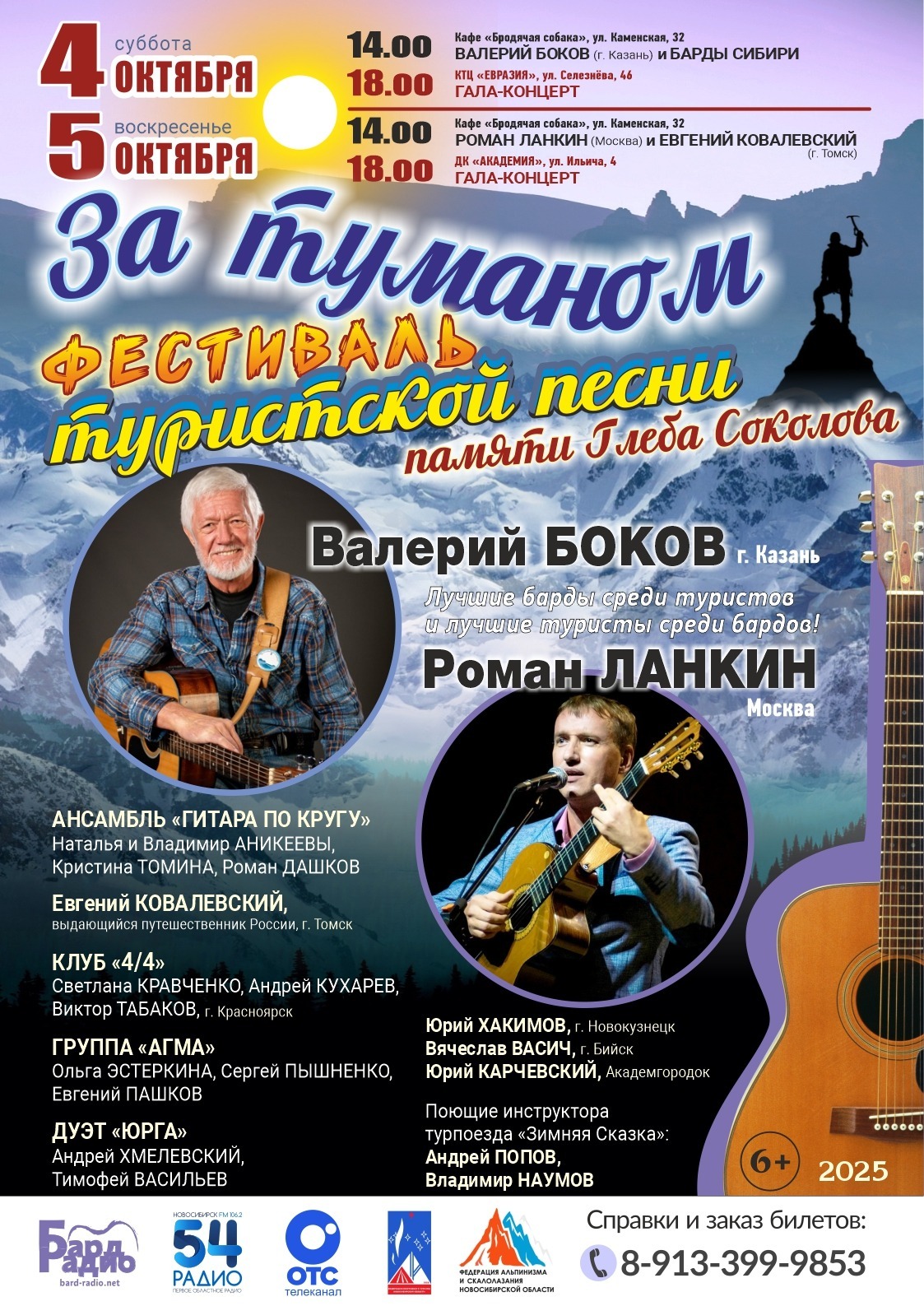 Фестиваль туристской песни «За туманом» памяти Глеба Соколова состоится в Новосибирске в начале октября.
